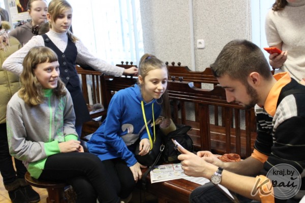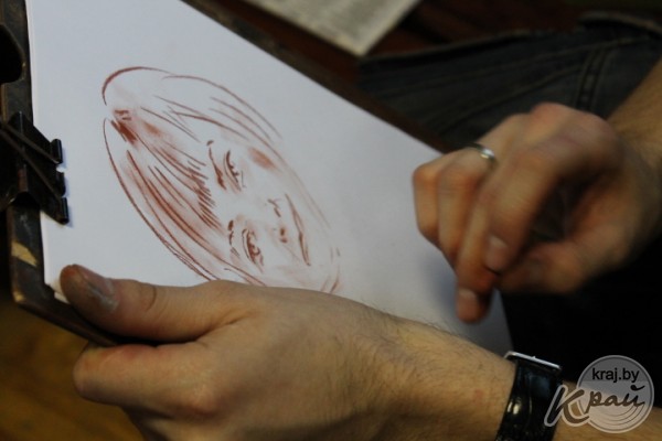 Кульминацией вечера стал мастер-класс. Юные вилейчане занимали очередь, чтобы попозировать Евгению Шунейко и Владимиру Сайко. Портреты они могли забрать с собой. Кто-то пытался внести свой штрих в начатый Андреем Лычковским натюрморт.