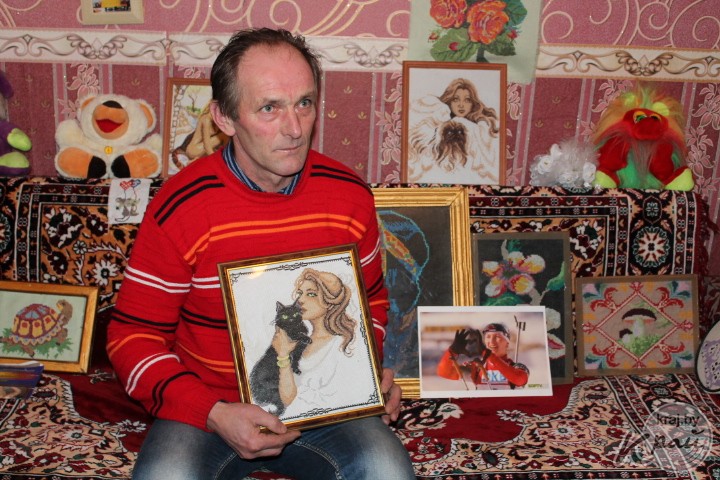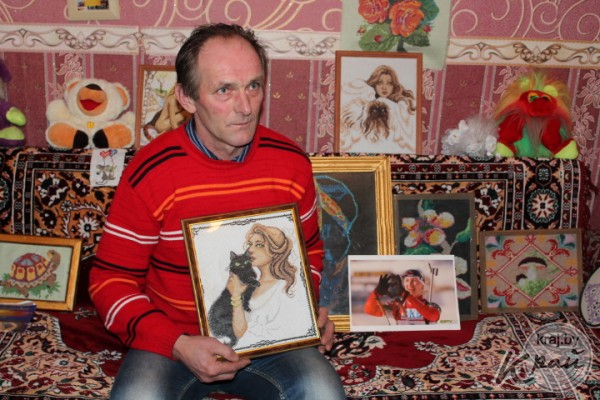 Юрий Кондратович встретил меня возле своего дома. Заходим в просторную комнату. Наблюдаю больше десятка аккуратно вышитых картин с грациозными женщинами, яркими животными и красивыми цветами. Казалось бы, такие темы больше волнуют женщин. А здесь – инженер по образованию, активный спортсмен и… вышивает.