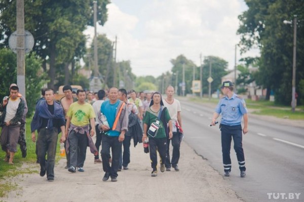 В Гомельской области 200 китайских рабочих устроили марш протеста из-за невыплаты зарплаты. Фото с сайта tut.by