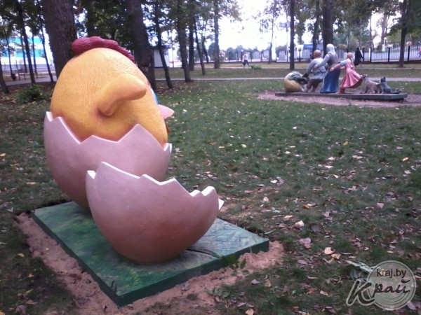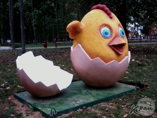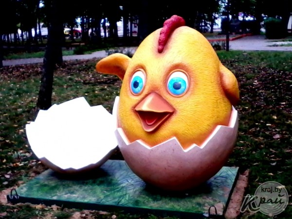 – Конкретного названия у моей работы нет. Это ассоциация с детством: яйцо – это начало начал, а цыпленок – это ребенок. На мой взгляд, символично, – поделился с Край.бай вилейский скульптор Валерий Опарик. – Надеюсь, что скульптура придется к месту, вилейчане ее полюбят, примут и сберегут.