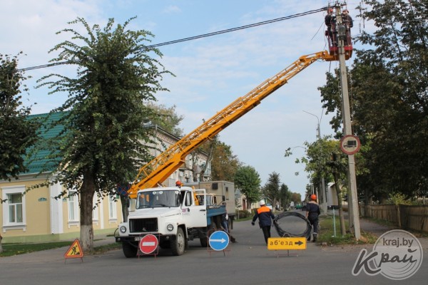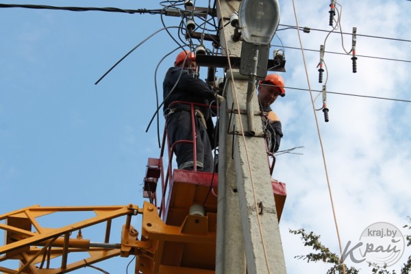 Основной фронт работ развернулся на улице Водопьянова. Здесь Вилейский РЭС проводил замену линии электропередач. Как пояснили рабочие, такую же работу предстоит сделать на улицах 17 Сентября и Советской. К концу рабочего дня линию электропередач меняли и на ул. Шубина.