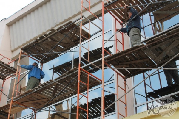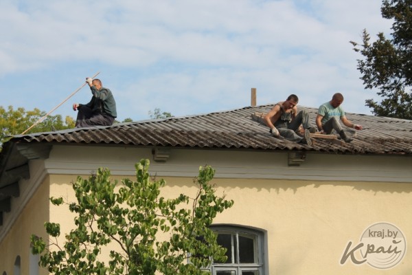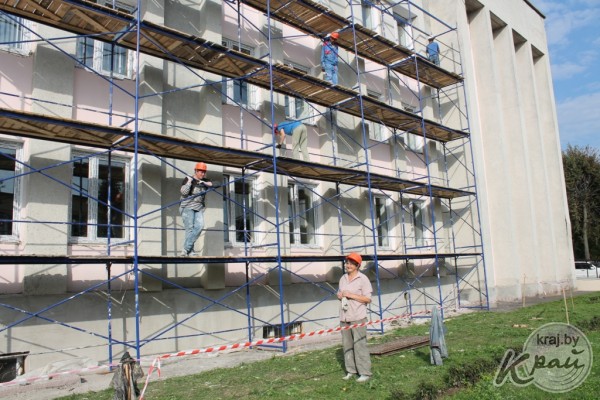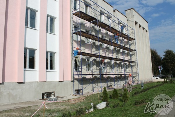 Здание районного Совета депутатов к «Дожинкам» тоже обновляют: штукатурят и красят