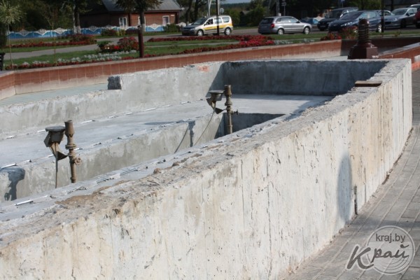 На центральной площади города фонтан также ждет ремонт. По словам рабочего, на площади планируется обновить и асфальт