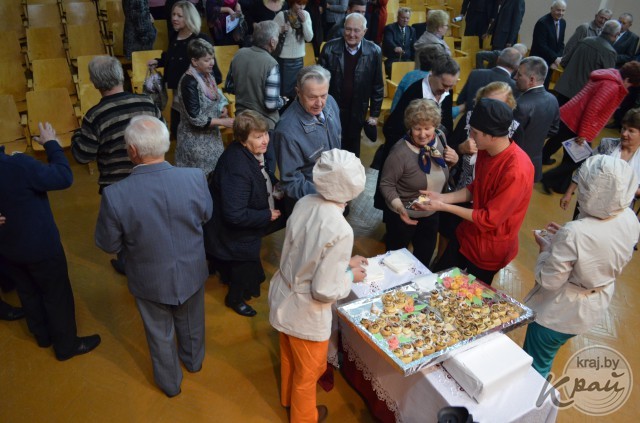 Специально к празднику, отметила Светлана Мацукевич, мастера колледжа испекли большой торт в виде цифры 75. И каждый гость, уходя из зала, смог угоститься тортом и шоколадным фондю.