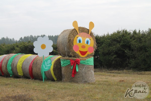 Гигантская соломенная гусеница. Перед «Дожинками» на подъездах к Вилейке установили чучела и скульптуры