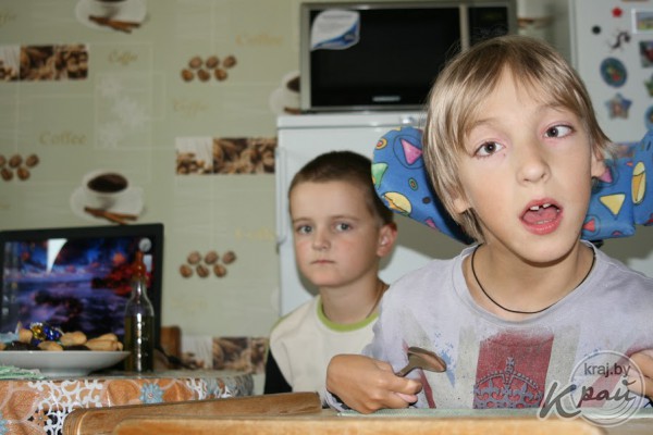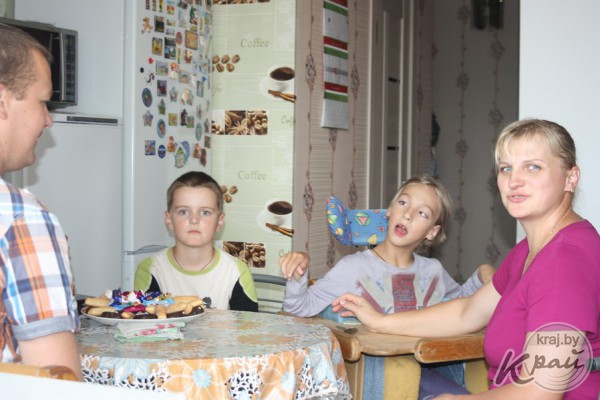 Юрий и Ольга живут в новом микрорайоне Вилейки. В уютной трешке нас уже ждут улыбчивая 10-летняя Юля в инвалидном кресле – у девочки ДЦП, и 8-летний скромный Артём. На столе домашняя пицца, большая тарелка сладостей. Девочка тянется к новому гостю.