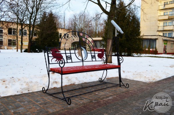 Скамейка на астрономическую тематику, где можно не только пообщаться, но и посмотреть на звезды, расположилась между вторым учебным корпусом и общежитием Вилейского государственного колледжа.