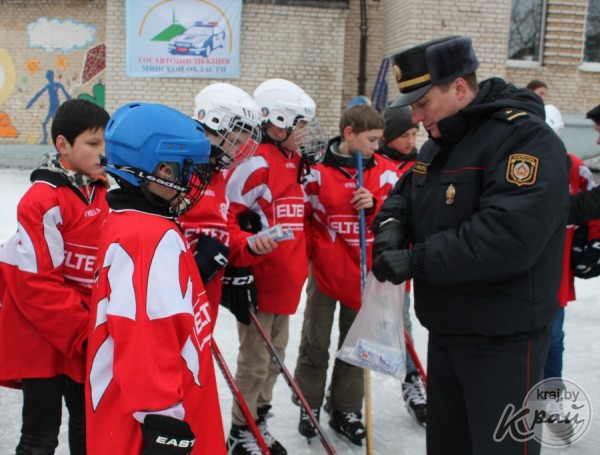 Вместе с сотрудниками ГАИ области в гости к воспитанникам Вилейской школы-интерната для детей с тяжелыми нарушениями речи приехали юные хоккеисты СК «Раубичи» и первый заместитель генерального директора компании «Кока-Кола Бевриджиз» в Беларуси Андрей Рощупкин.