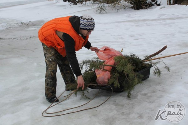 Субботним утром отправляемся в зону действия спасательной станции. К акции «Чистый водоем» подключились представители Вилейского опытного лесхоза, БООР с охотниками-добровольцами и спасательной станции. Фронт работ немалый: нужно обойти километры водоема по льду и убрать прибрежную зону, где рыбаки и туристы любят больше всего мусорить.