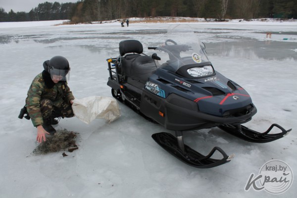 С госинспектором Мядельской межрайонной инспекции охраны животного и растительного мира Владимиром Хило также отправляемся на лед ближе к деревне Чижевичи.