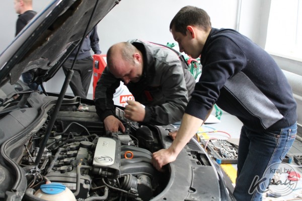 Как работники СТО и будущие автослесари учились в Вилейке менять масло в автомобилях с коробкой автомат (фото)
