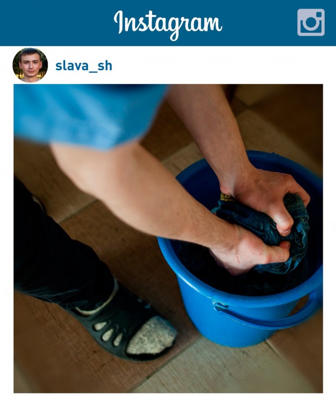 “Просыпаюсь в 6.30, в больнице уже в 8.00. Сразу разношу документы, статистику по больным, протираю пыль, потом разношу еду”, – рассказывает Вячеслав, пока моет пол в коридоре.