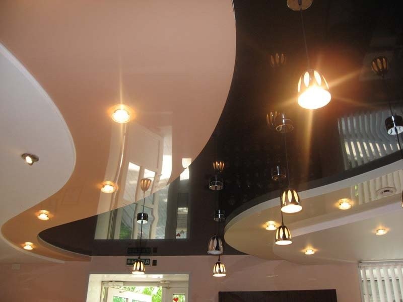 Современный потолок представляет собой прочную пленку из поливинилхлорида, натянутую на каркас, прикрепленный к поверхности под определенной температурой. После охлаждения материала мы получаем идеально ровную поверхность.