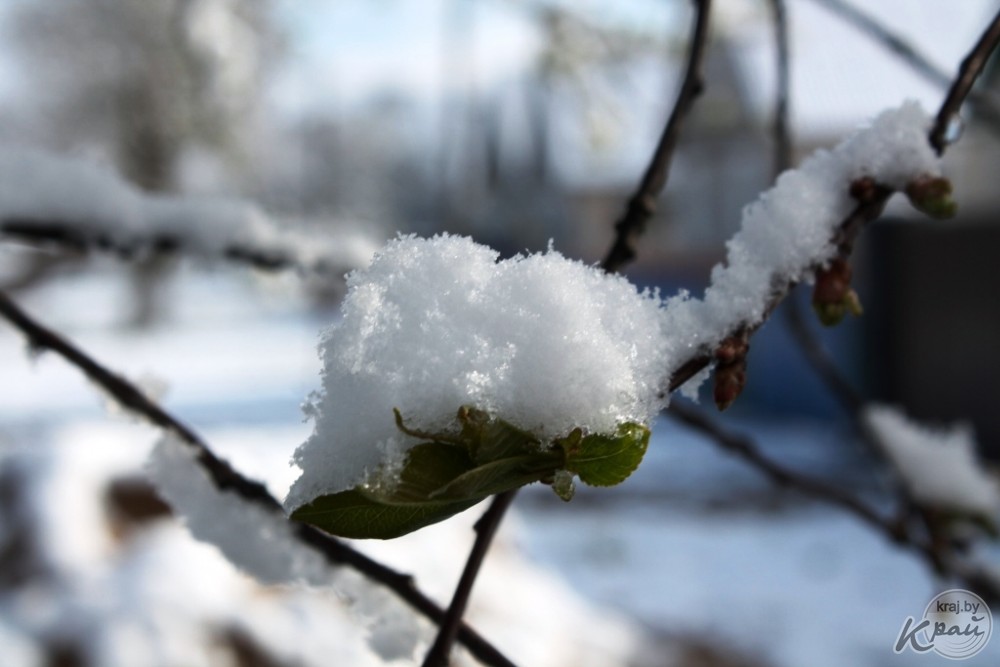В Вилейке с 10 на 11 мая выпало около 10 см снега. Фото Юлии Лахвич, Край.бай
