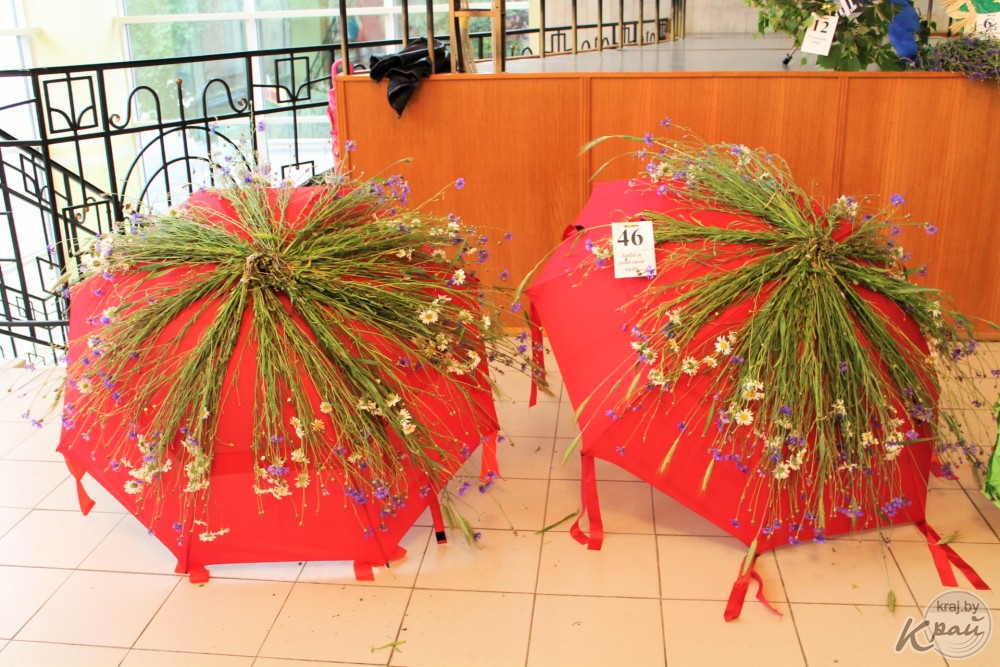 Третье место – у Надежды Шестиловской с тремя зонтами в виде белорусских цветов – василька, льна и клевера.