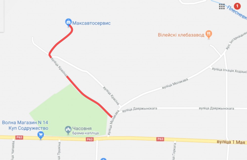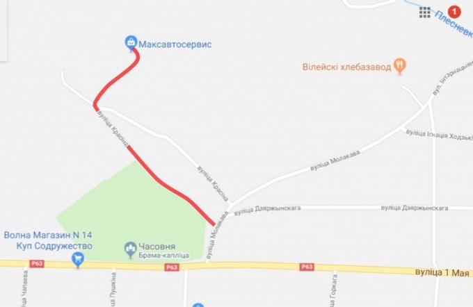 На карте Гугл видно, что улица Красина в Вилейке имеет два ответвления. Нижнее (с асфальтным покрытием) идет вдоль кладбища к предприятиям, магазинам. Верхнее (с гравийной дорогой) проходит через частный сектор