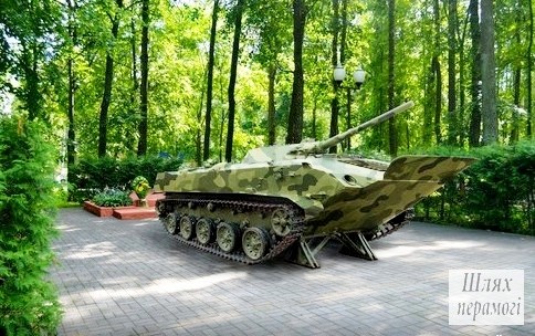 Малая архитектурная форма состоит из постамента и размещенного на нем БМД. В состав тематической группы также планируют включить памятный знак в честь освобождения г. Вилейки и декоративно-ландшафтные композиции. Место размещения – центральная аллея городского парка Вилейки.