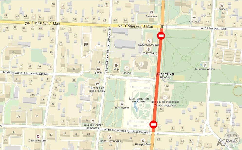Как сообщил kraj.by старший инспектор отделения ГАИ Вилейского РОВД Егор Кузмичёв, движение для всех видов транспорта, кроме маршрутного городского, с 6.00 до 13.00 будет закрыто от перекрестка улиц 17 Сентября – 1 Мая до перекрестка улиц 17 Сентября – Водопьянова.