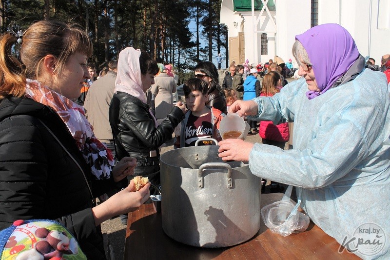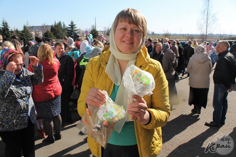 Каждый год у храма собираются не только вилейчане. Отведать пасхальный торт приезжают гости из Сморгони и Молодечно.