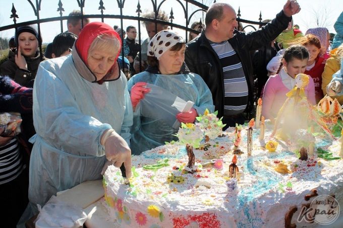 120 яиц и больше 100 кг муки. В Вилейке на Пасху четверть века пекут огромный торт
