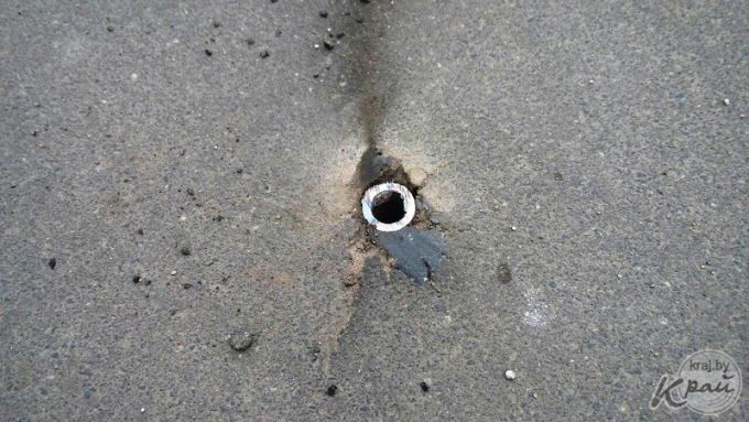Трубу, выросшую из асфальта возле СШ №3, 18 апреля нашел, сфотографировал и передал снимки kraj.by вилейчанин Игорь Санкевич.