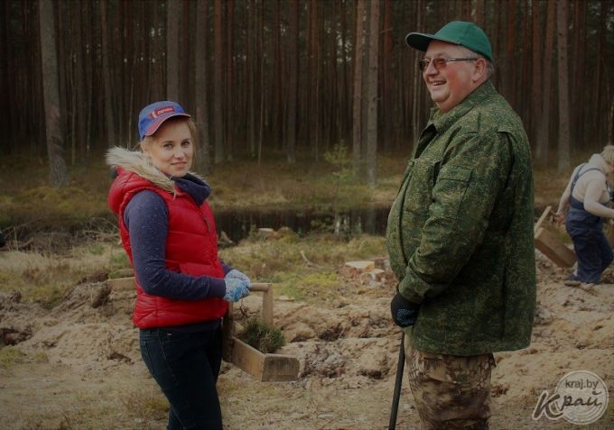 Председатель Конституционного суда Беларуси Пётр Миклашевич родился в деревне Косута под Вилейкой. На субботнике садит деревья под меч Колесова и признается, что на малой родине бывает часто. В летней усадьбе хозяйничает с супругой, там посадил сад, в котором уже около сотни деревьев. А вот лес садит впервые.
