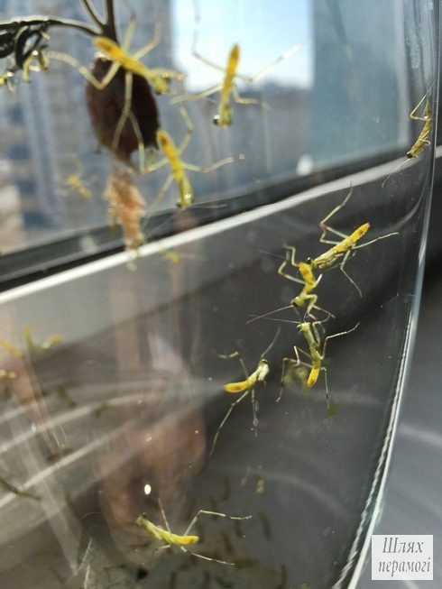 Сосчитать маленьких богомолов, а это оказались именно они, было невозможно, но в среднем их было около 200. Яркие желто-зеленые насекомые облепили всю банку. У Сергея Ивановича даже не возник вопрос, что с ними делать. Он решил оставить богомолов в квартире. Купил для них террариум и стал наблюдать. Заметив, что богомолы стали поедать друг друга, стал покупать для насекомых-хищников мошек в зоомагазине.