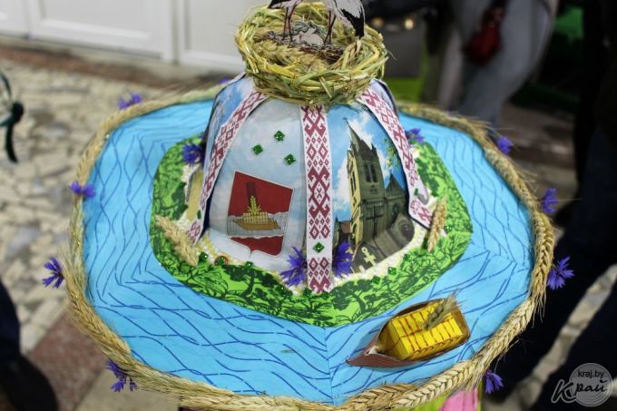 – Здесь мы собрали всю красоту Вилейского края: и река здесь, и луга, и леса, и храмы, и герб Вилейки, – перечисляет Алеся. – Шляпу делал муж, за два дня управился, – улыбается она.