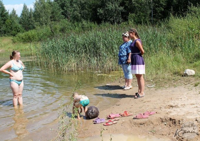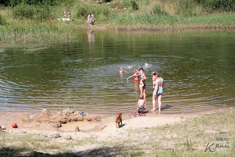 На противоположном берегу от трассы (здесь подход к карьеру. – Прим. Kraj.by) купается небольшая компания: женщины с детьми. На представителей ОСВОДа дамы в ярких купальниках смотрят с удивлением. На предложение сменить место отдыха «заводятся»: информационного стенда о запрете возле водоема нет, газеты не читают и о том, что купаться в карьере нельзя, слышат первый раз.