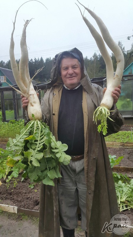Алёна Антоненко прислала на конкурс фотографии дайкона, собранного на участке в дачном поселке Дубравы в Молодечненском районе. Редьку огромного размера вырастил сосед, а женщина его запечатлела.