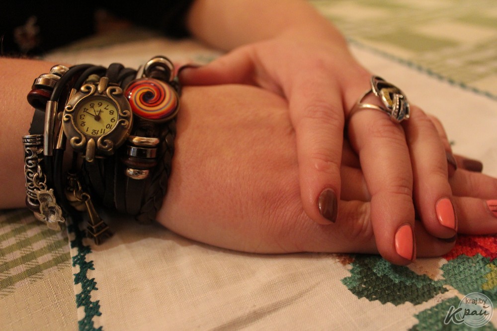 – А еще я очень люблю часы. Это моя страсть. Однажды увидела одни в Интернете. Очень понравились. Поехала в Минск и обошла несколько магазинов, пока не нашла их, – делится тонкостями в создании образа Виктория.