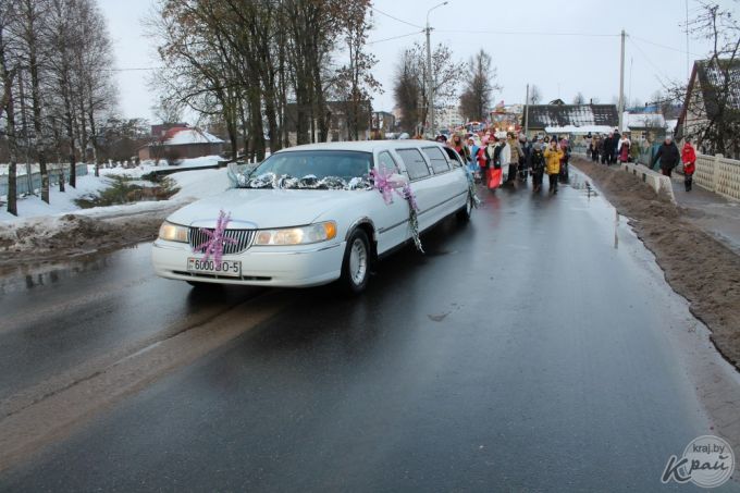 Возглавил колонну белый лимузин, ряженые работники сферы культуры и молодежь. За ними по центральной улице города в сопровождении экипажа ГАИ следовала декорированная техника предприятий и учреждений.