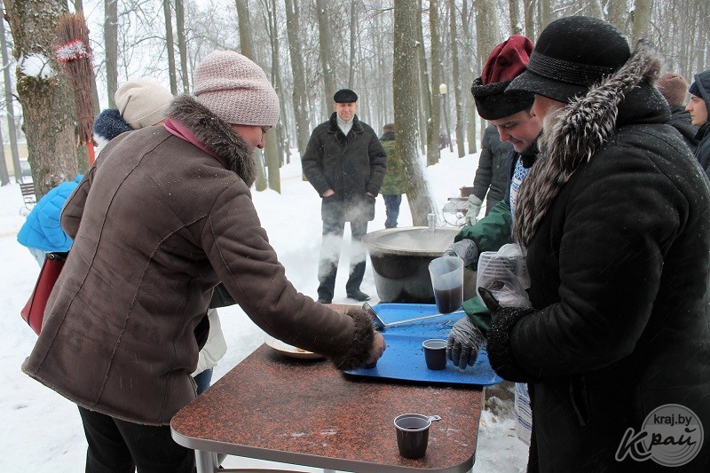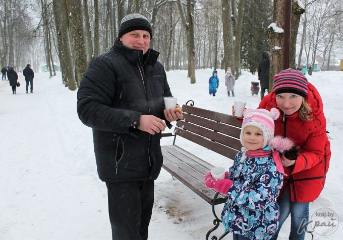 Гости соревновались в метании снежков и перетягивании канатов, водили хороводы и угощались горячим чаем с печеньем. Бесплатное чаепитие в парке организовали при поддержке районных общественных организаций, хлебозавода и местного колледжа. За полтора часа вилейчане выпили больше 80 литров чаю, которым угощала Баба Яга.