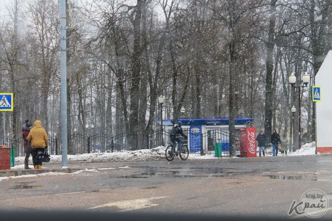 А мы снова на переходе у входа в парк. В ходе профилактической акции ГАИ усилила контроль не только за водителями, но и за пешеходами и велосипедистами. Очень часто действия именно последних приводят к авариям. Поэтому, когда велосипедист, не спешившись, пересекает пешеходный переход, патрульный автомобиль сразу же следует за ним.