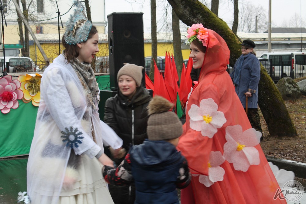 Провожали зиму в городе 10 марта. Несмотря на серость и дождь, вилейчане шли в парк семьями.