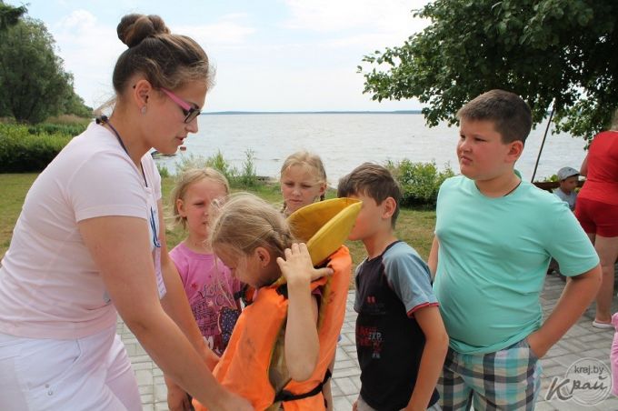 Из-за ворот станции появляется желтый автобус с опознавательной наклейкой «Школьный». Из салона высыпаются 20 детей в разноцветных кепках. Сначала школьникам показывают фильм о том, как вести себя на воде, потом проводят экскурсию по станции, еще раз напоминают правила и приводят в качестве примеров трагические истории.