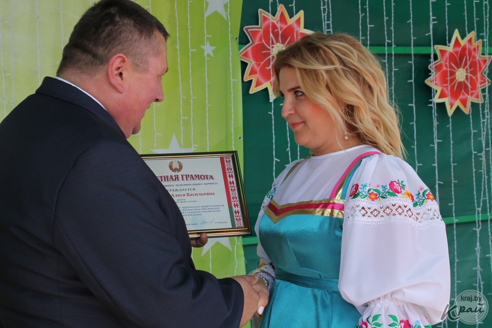 Председатель райисполкома Олег Бегунец вручил директору ДК Алесе Высоцкой почетную грамоту. Такую же награду получил и директор ОАО «Нарочанские зори» Геннадий Кучко