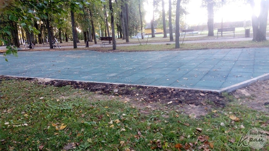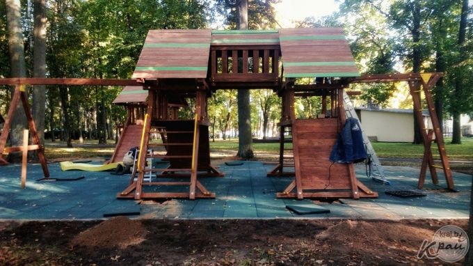 Рабочие положили резиновое покрытие. Сейчас идет установка самого игрового комплекса.
