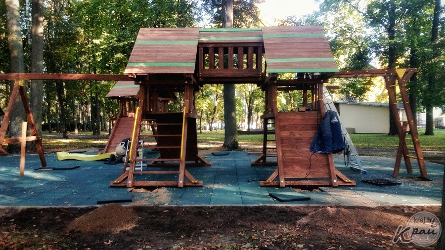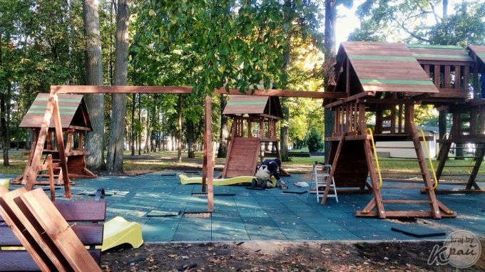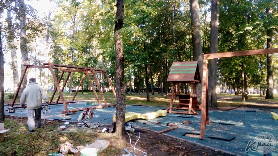 Продолжается монтаж детской площадки в вилейском городском парке.