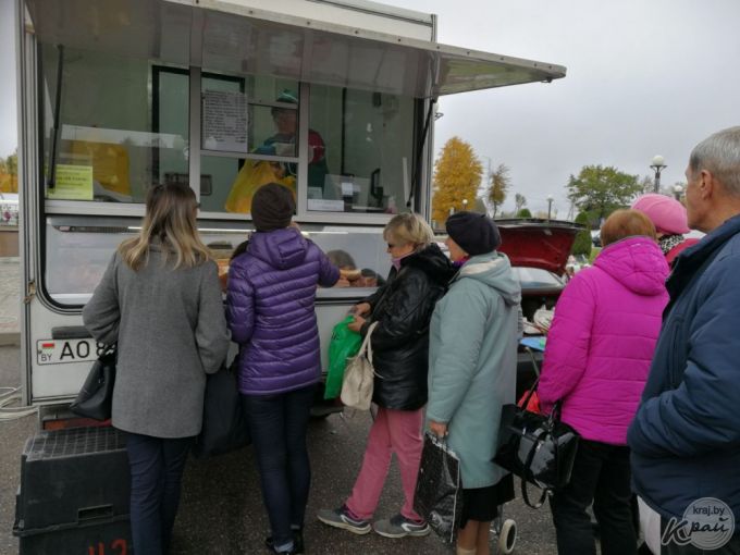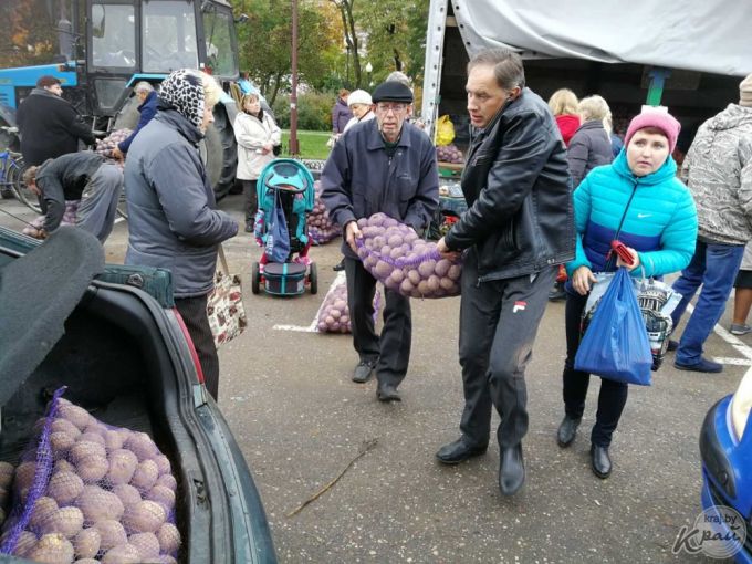 Напротив – конкуренты. В фургоне – морковка, свекла, капуста и второй хлеб. Вероятно, именно ассортимент привлекает глаз покупателя. И сорт картошки «Румба», которую всю размели. Вилейчане говорят, вкусная и хорошо хранится.
