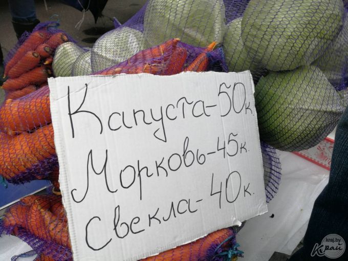 На ярмарке кило обычного репчатого лука стоит 80 копеек. Плюс 20 копеек в цене по сравнению с прошлым годом. Продавцы уточняют: картошку, морковку, свеклу везут на рынок из Бреста. Цены на овощи в этом сезоне в среднем выросли на 40% – фермеры включают в стоимость расходы на содержание хранилищ и зарплату людям.
