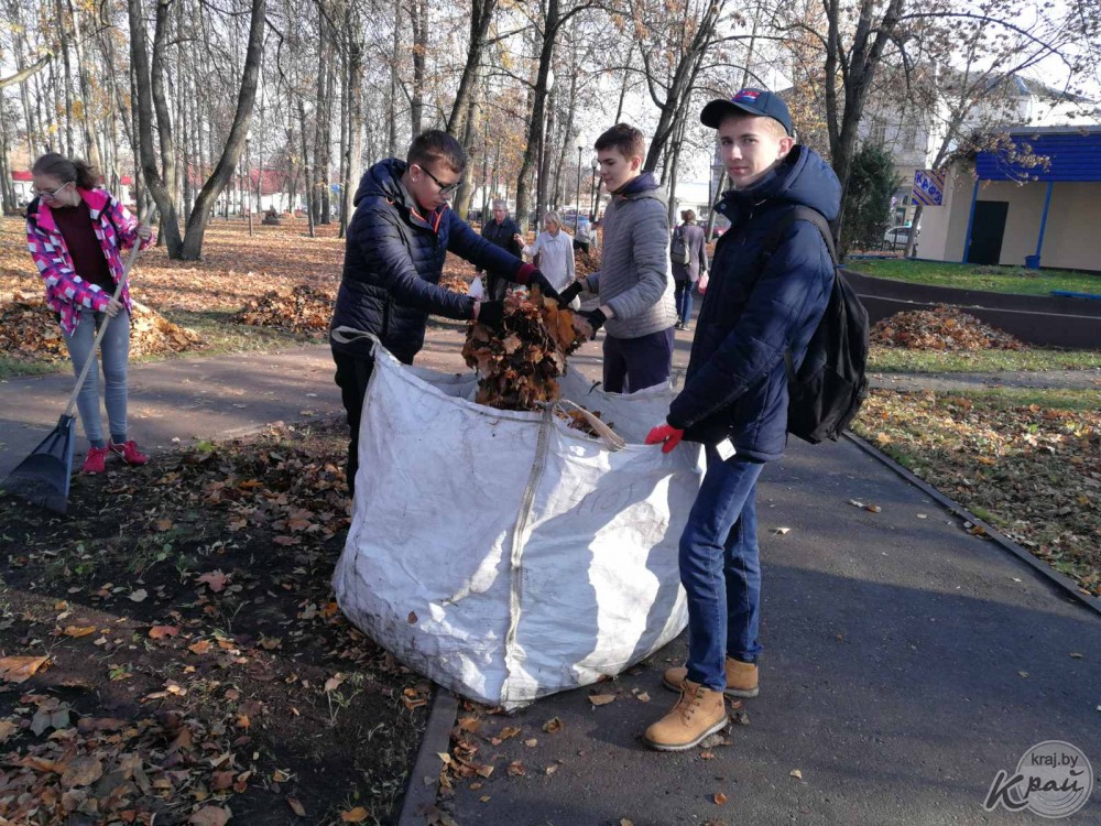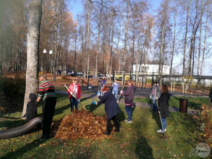 Основном фронт работ во время субботника 19 октября развернулся в городском парке Вилейки. Здесь трудились и школьники, и педагоги, и работники предприятий.