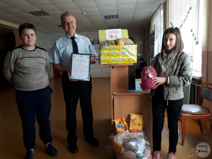 Николай Гиро рассказал kraj.by, что акция затронула не только школу, но и весь город. Корм для животных, капли и пожертвования приносили родители не только детей, которые учатся в третьей школе.