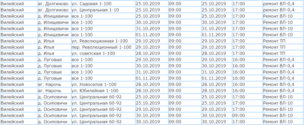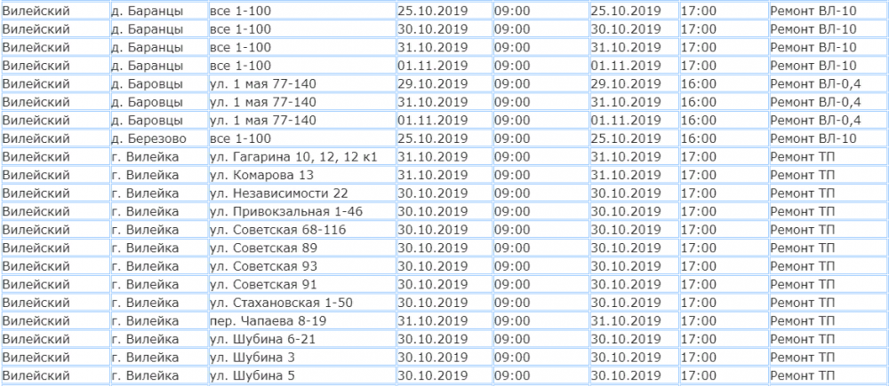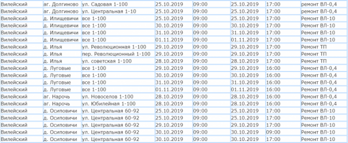 Свет в некоторых населенных пунктах Вилейского района начали отключать уже сегодня, 25 октября.