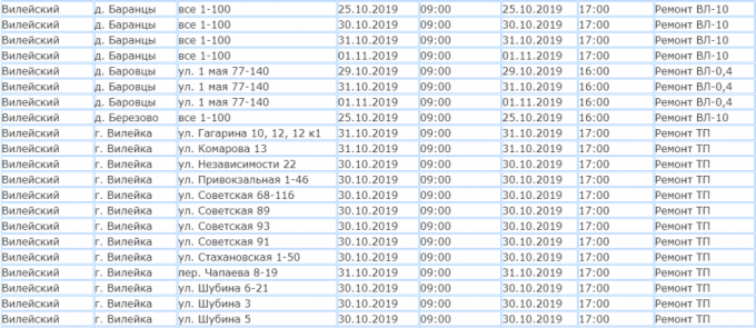 График плановых отключений электроэнергии с 25 октября по 1 ноября размещен на сайте Минскэнерго.