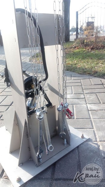 Одну установили при входе в городской парк, другую – возле магазина «Доброном» в микрорайоне Северный. Конструкции представляют собой стойки для подвешивания велосипедов. Есть набор ключей и насос, чтобы, например, самостоятельного подтянуть цепь или накачать колеса.