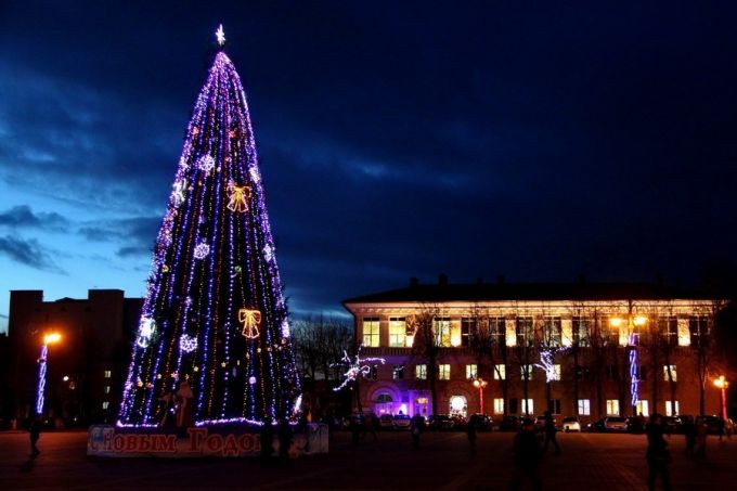 В этом году в городе – новая главная елка. Искусственная и с новой иллюминацией. Ее собирали и украшали четверо суток.