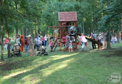 Хотите узнать больше? В городском парке Вилейки 2 июля открыли детскую игровую площадку. Фото Юлии Лахвич, Край.бай Такой подарок город получил к своему юбилею, 555-летию,