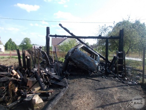 Гараж и «Форд Эскорт» сгорели в Стешицах на Вилейщине (ФОТО)