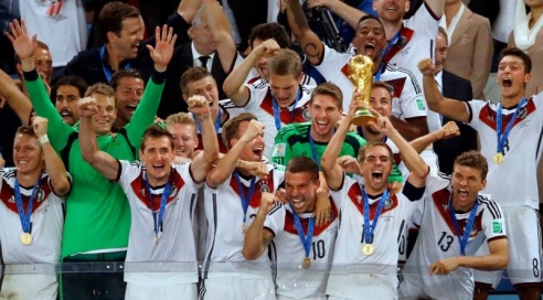 Хотите узнать больше? Команда Германии после победы. Автор фото неизвестен Футболисты сборной Германии в четвертый раз в истории стали чемпионами мира, победив в финале